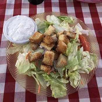 Everything was excellent. The house vinaigrette, the garlic bread (dipped in homemade marinara), and the pizza. Fast and friendly service too. We will be back.