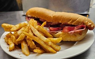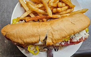Served on a Fresh Baked Baguette with French Fries/sub–Side Salad $2