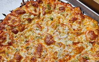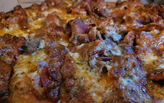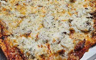 HOMEMADE Italian sausage, bacon, onions, mushrooms and extra cheese.