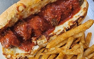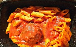 Mostaccioli noodles covered in our HOMEMADE marinara sauce, topped with our HOMEMADE meatballs.