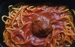 Spaghetti noodles covered in our HOMEMADE marinara sauce, topped with our HOMEMADE meatballs.